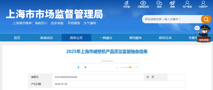 2025年上海市破壁机产品质量监督抽查结果公布