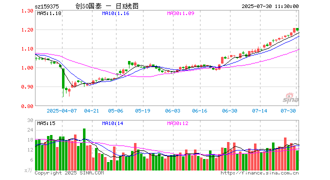 创业板50ETF国泰(159375)跌0.91%,半日成交额1391.64万元