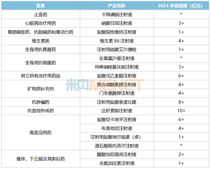 表2:前十批集采已中标的化药注射剂亚类情况