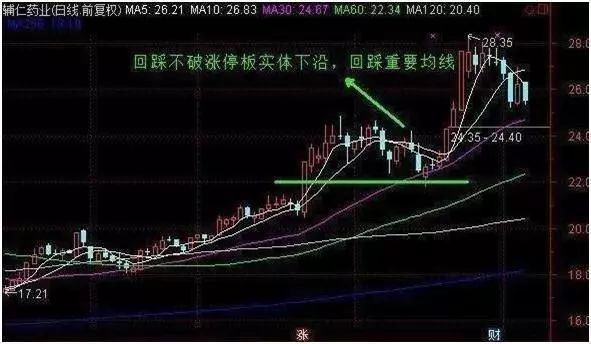 涨停之后,股价调整但是不跌破涨停板的实体下沿,最好就是有资金流入,并且回踩重要均线。