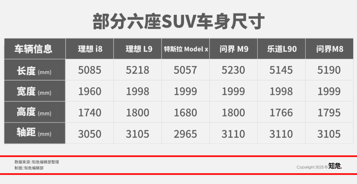 但,从实际的车身尺寸来看,理想 i8 属于行业内中间水平,不及处于同一价格带的问界 M8,也比不上乐道 L90。
