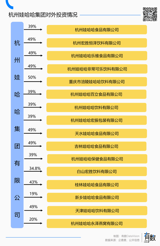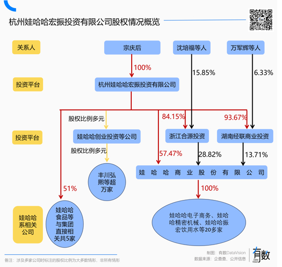 2007年,宗庆后又成立了宏振投资,由自己100%持股,直接对外投资公司30家,其中包含娃哈哈集团旗下5家公司,均通过51%的持股比例,掌握了绝对控制权。