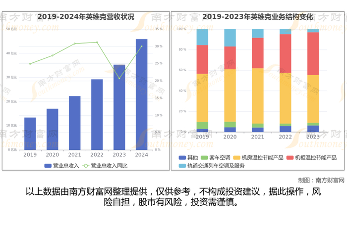 数据显示(如上图),英维克2024年营业收入为45.89亿,同比增长30.04%,近5年复合年增长率28.12%。