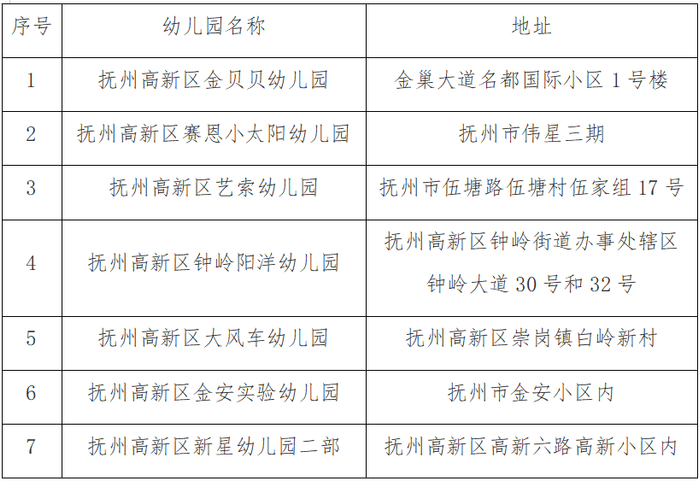 此外,7月30日,抚州高新区社会发展局发布公示,拟注销7所民办幼儿园。