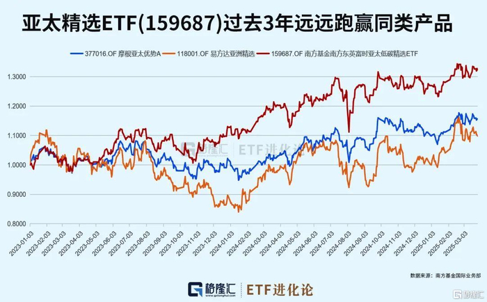 数据显示,亚太精选指数在2023年、2024年及2025年年初至今均实现正收益,且大幅跑赢同类指数。