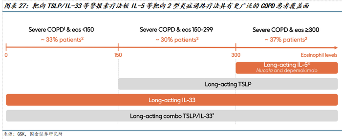 2) 关注在生物制剂赛道具有差异化优势的管线的标的,目前已获批用于治疗COPD生物制剂覆盖人群有限,TSLP、IL-33/ST2等上游通路有望进一步拓宽适用人群范围并进一步提升疗效,建议持续关注相应分子临床进展。
