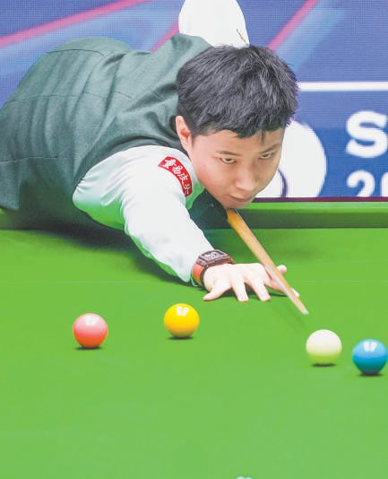 昨天,赵心童在比赛中击球。新华社发