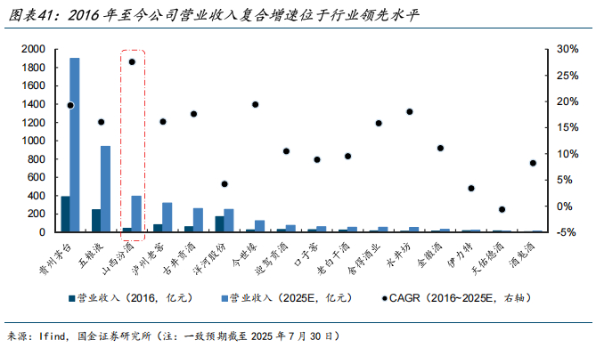 公司是2016~2024年营业收入与归母净利增速最快的上市酒企,也是2016年至今股价涨幅最高的酒企。即使当前行业景气承压,多地渠道反馈公司品牌势能仍在上行。