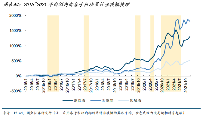 归纳来看,上一轮白酒行情右侧节奏可划分为三个阶段:1)宏观预期改善带动行业叙事,估值率先修复;2)宏观预期与微观基本面体感错配,板块震荡消化估值;3)宏观预期与微观基本面相互印证,此时为右侧大周期起点。我们判断目前尚处于第一阶段,该阶段优质泛全国化酒企估值修复弹性预计较大,主要系其中期成长性预期相对占优。