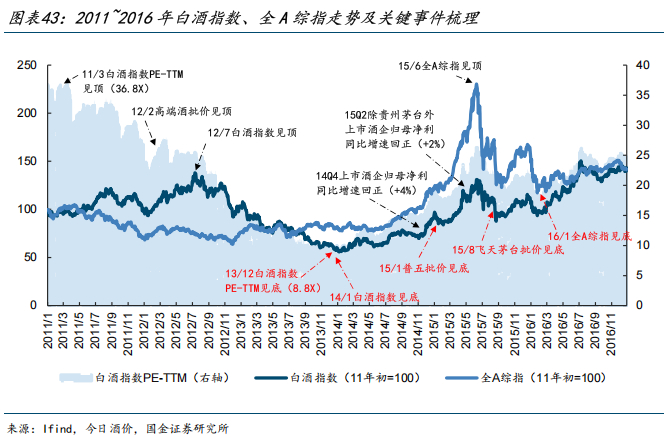 从今年两会提出“实施更加积极的财政政策”、“实施适度宽松的货币政策”、“大力提振消费、提高投资效益,全方位扩大国内需求”,到近期“反内卷”催化、雅鲁藏布江下游水电工程开工带动市场对基建相关预期修复。尽管短期白酒行业景气度与酒企EPS预期均不佳,但我们认为对中期经济恢复与内需复苏可乐观。复盘上一轮行情可见,当市场对景气复苏形成一致预期时,白酒板块即进入右侧配置区间,即便基本面与报表尚未共振——例如2016H1,彼时白酒动销预期尚未完全修复