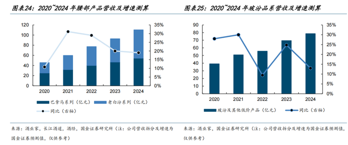 我们预计2024年公司腰部产品营收已达百亿以上,其中老白汾系列受益于省外汾酒品牌势能不错的区域逐步导入、增速相对较优,预计体量已略高于巴拿马系列;巴拿马系列近几年维持双位数增长,主要源于省内消费升级。