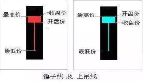 它们有两种颜色,可以是阳线也可以是阴线,也就是无论是涨或跌都可以形成锤子线或上吊线。