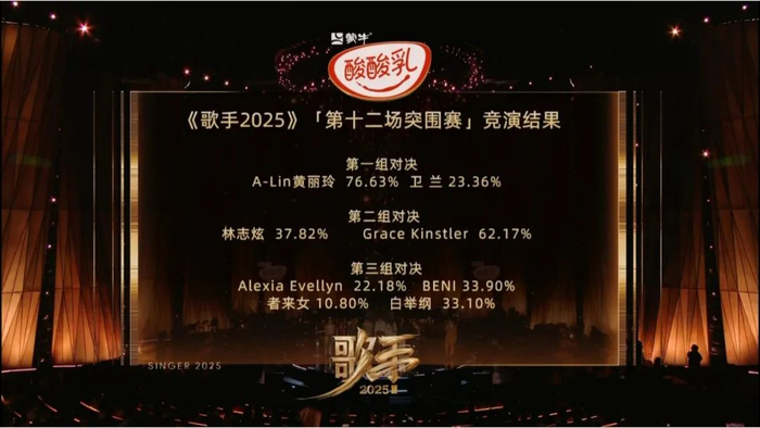 《歌手2025》官宣总决赛名单:陈楚生、单依纯、米奇、A-Lin黄丽玲、李佳薇、格瑞丝、BENI成为七位歌王候选人