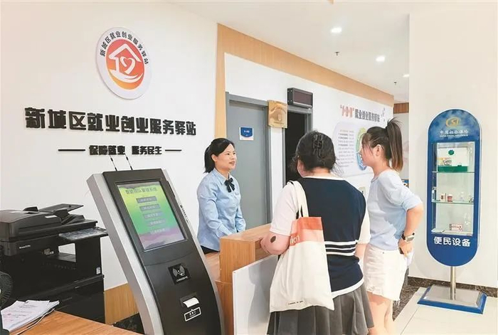 在新城区就业创业服务驿站,记者看到工作人员正在耐心地为前来咨询的居民介绍岗位。这里服务台、岗位信息屏、职业指导室、培训教室等功能区划分清晰,墙上“就业帮扶,真情相助”的标语温暖而有力。