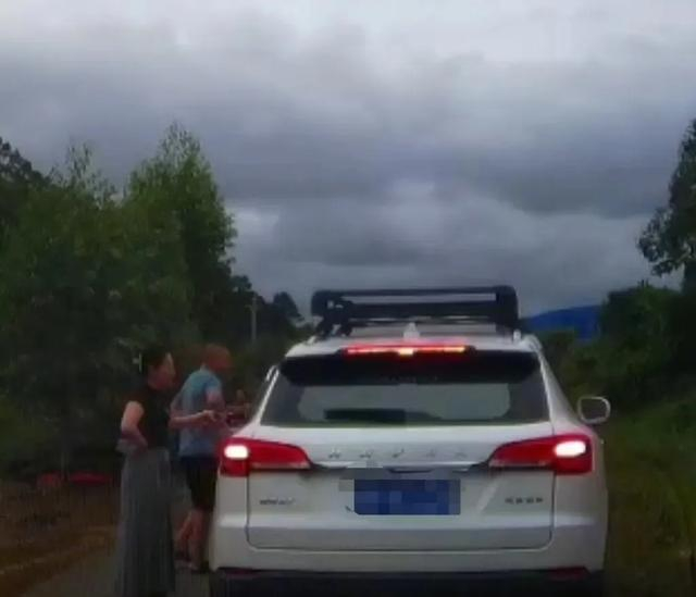 跟在“平头哥”车后的车辆,其记录仪拍到了上述画面:女子右手拿着手机,将左手中攥着的物品展示了一下,女子又称报警。