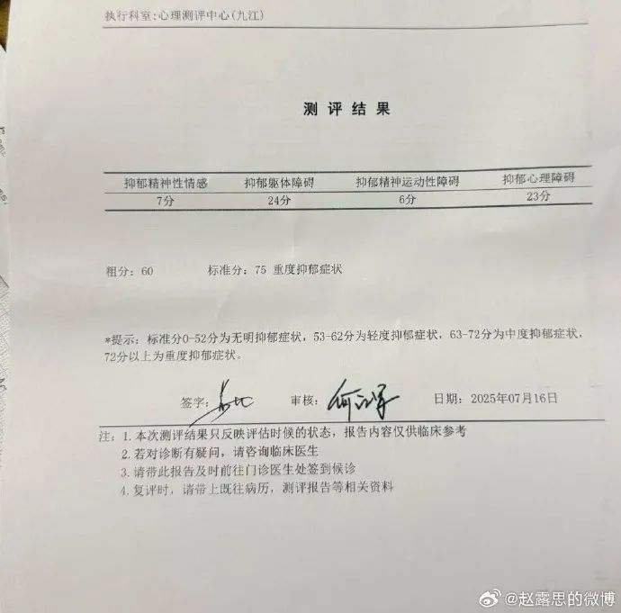 刚刚,赵露思发文谈解约风波,并晒出重度焦虑和抑郁测评报告: