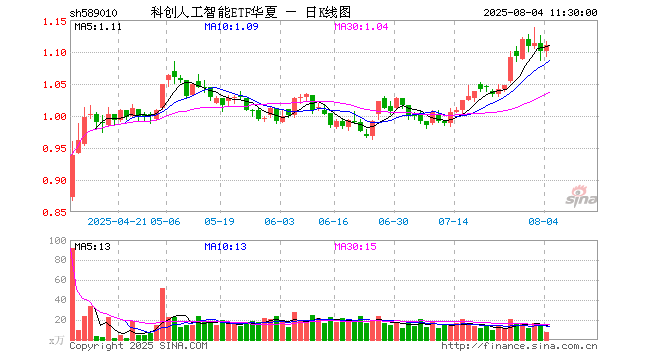 科创人工智能ETF华夏(589010)涨0.82%,半日成交额798.47万元