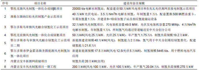 表4鄂尔多斯风光制氢一体化示范项目