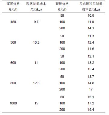 表5煤制氢成本分析(考虑碳税)