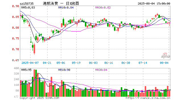 8月4日港股消费ETF(159735)份额减少1000.00万份,最新份额7.44亿份,最新规模6.09亿元