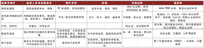 图表:人形机器人各部位材料应用