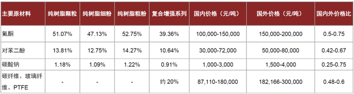 图表:PEEK原材料拆分及国内外价格