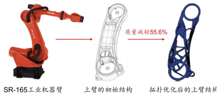 图表:经拓扑优化等方法后,机器人SR-165的上臂质量减轻55.6%