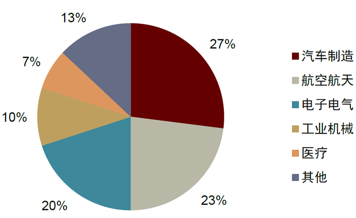 资料来源:北京工业大学材料科学与工程学院,《机器人轻量化材料应用的研究进展》(于成涛等,2019),长江有色金属网,中金公司研究部