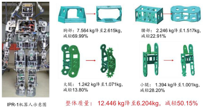 图表:经拓扑优化等方法后,机器人IPR-1减重50.15%