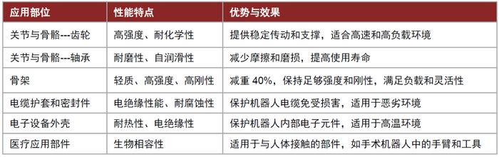 图表:PEEK在人形机器人各部位的应用