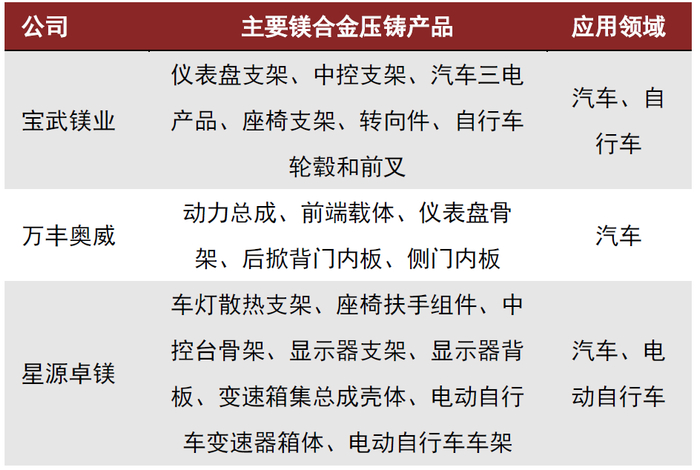 图表:行业主要公司镁合金压铸产品