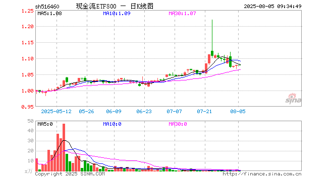 现金流ETF800(516460)业绩比较基准为中证800自由现金流指数收益率,管理人为鹏华基金管理有限公司,基金经理为寇斌权,成立(2025-04-17)以来回报为7.51%,近一个月回报为2.24%。