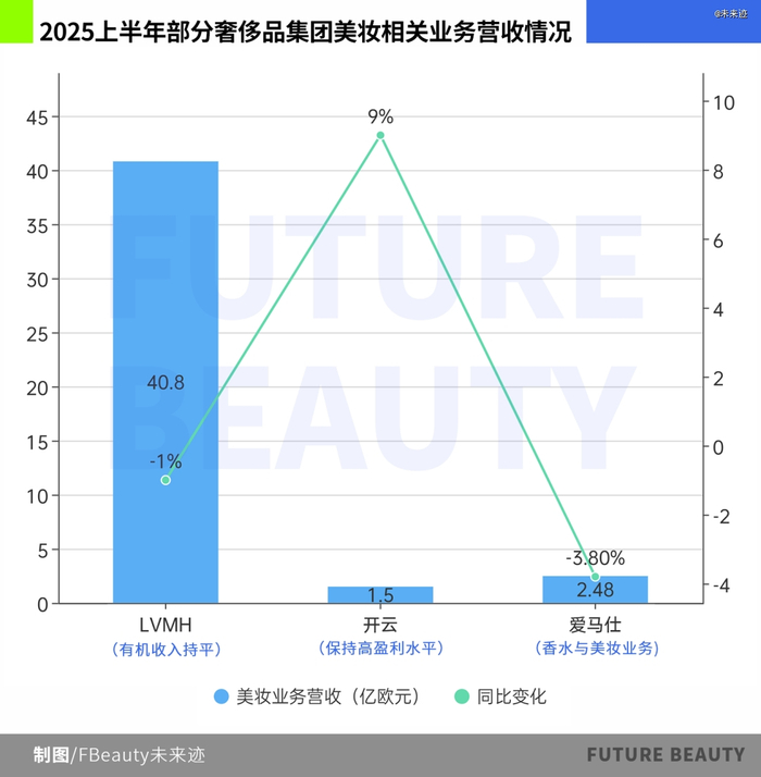 2025年上半年,全球奢侈品集团业绩普遍承压,核心业务如皮具、成衣站稳脚跟却仅够维持体系稳定;香氛与彩妆等美妆板块表现相对稳健,成为疲弱局面中的“小亮点”。但从营收体量及组织定位来看,其能否支撑集团成为“新引擎”仍存多重制约。