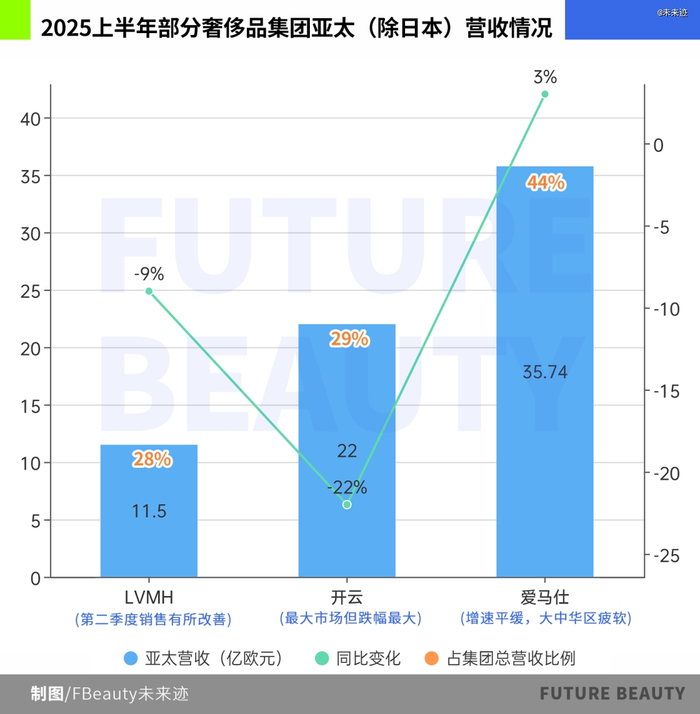 另外,各大集团也面临着诸多挑战。传统业务表现疲软,依赖时装皮具的LVMH、开云等集团承压明显,市场饱和与创新成本攀升制约了其增长。区域市场失衡问题突出,亚太市场整体降温,LVMH日本销售额下降15%、开云下降20%,打破了此前“东方市场托底”的预期。