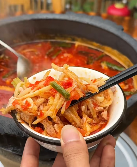 酸笋的独特香味搭配嫩滑鸡肉,笋丝爽脆耐嚼,鸡肉吸满汤汁,味道非常特别~