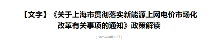 风芒能源获悉,8月5日,上海市发改委发布《关于上海市贯彻落实新能源上网电价市场化改革有关事项的通知》。