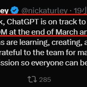 前一天,ChatGPT应用主管尼克·特利(Nick Turley)高调宣布,ChatGPT的周活跃用户数预计将在本周突破7亿,这个数字在过去一年里增长了四倍。上一次OpenAI越过关键用户节点是在今年3月,当时周活跃用户数突破了5亿。