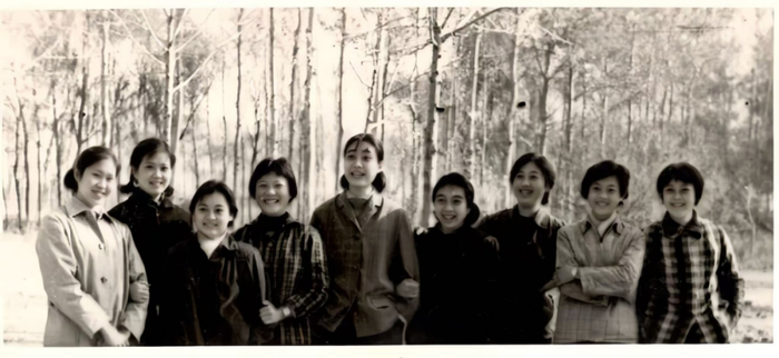 在北京电影学院,导演系78级女生的合影(左二胡玫)