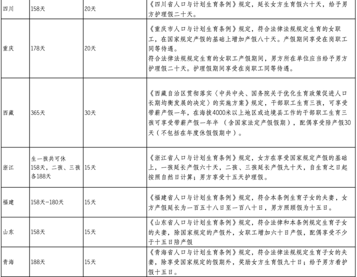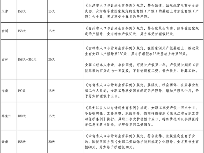 随着各地《人口计划与生育条例》的修改,大多数省份明确了育儿假。