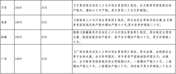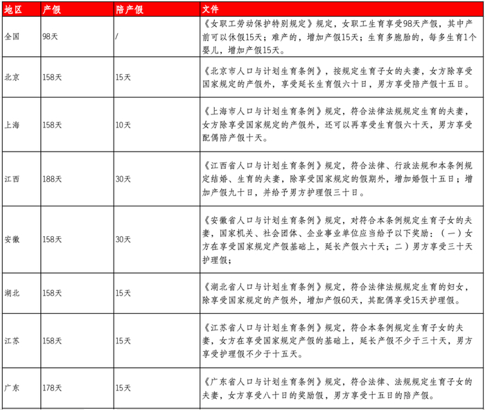 随着各地计生条例的修改,产假有所延长,具体可查看下表⬇️