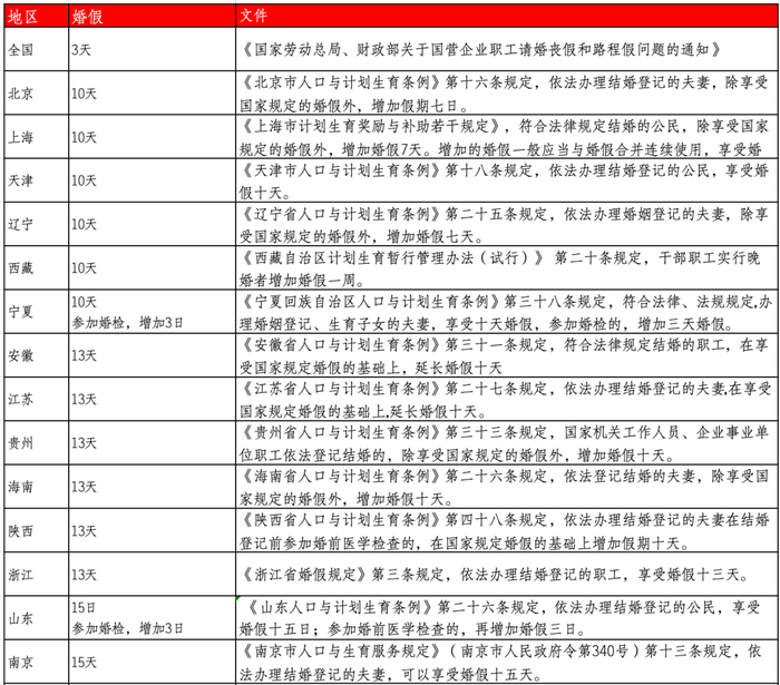 注:湖北省人民政府办公厅发布了《关于加快完善生育支持政策体系更加务实有效建设生育友好型社会的若干措施》的通知,其中明确湖北省延长婚假至15天。