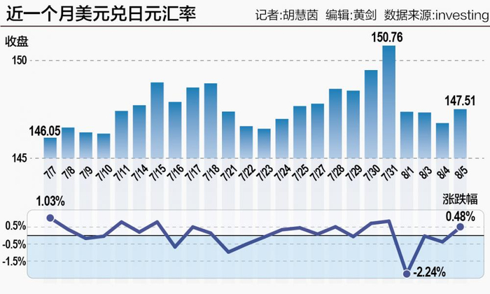 就在日本利率决议公布后,日元的走势打破了外界预计日元将进入贬值通道的预测,日元兑美元连续走强。截至北京时间8月5日下午6点,美元兑日元汇率为1美元兑147.51日元,日元月内升值2.16%。
