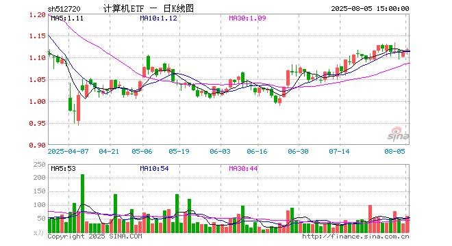 8月5日计算机ETF(512720)份额减少1200.00万份,最新份额13.34亿份,最新规模14.93亿元
