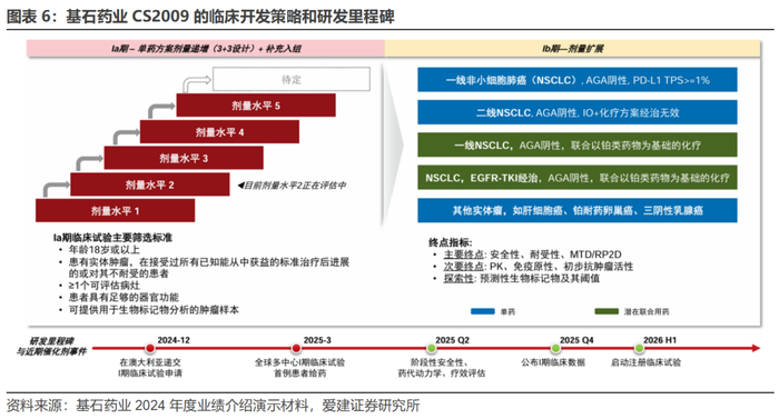 商业化潜力巨大,临床开发快速推进。在以往的临床研究中,PD-(L)1+VEGF组合疗法相较于PD-(L)1单药,能显著改善非小细胞肺癌患者的PFS,但在延长OS方面表现不佳,同时肺鳞癌一直是贝伐珠单抗的临床使用禁忌;类似的,PD-(L)1+CTLA-4联合疗法在黑色素瘤、非小细胞肺癌等部分适应症中观察到PFS和OS的获益,但由于严重不良反应的发生率显著增加,也限制了该疗法的临床应用。AK104(PD-1/CTLA-4)和AK112(PD-1/VEGF双抗)的临床开发成功,证明了双抗分子可以通过双靶点的协同作用实现“1+1>2”的临床效果,CS2009的三抗设计则具有超越双抗的市场潜力。目前CS2009的全球多中心临床研究正在快速推进,公司目标适应症主要集中在1L/2L NSCLC以及肝癌、卵巢癌、三阴乳腺癌等大适应症,预计在2026年上半年启动注册性临床试验。