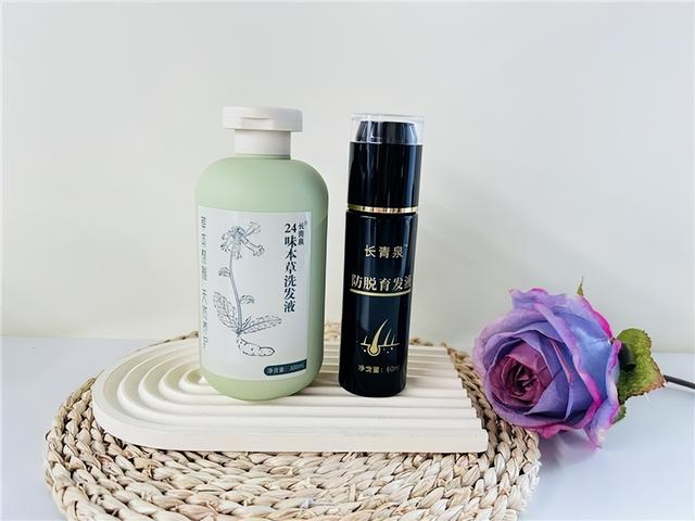 接下来要介绍的是与之形成绝佳搭配的长青泉防脱育发液。这款育发液的配方秉承品牌的草本养护理念,精选何首乌、红花、侧柏叶、补骨脂等植物提取成分,辅以10天的古法泡药工艺,每一滴都融入满满的自然精华。与洗发水搭配使用,防脱与育发兼顾,整体养护效果加乘。