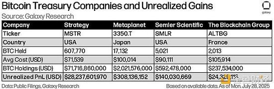 BTC 和 ETH 持仓量基于最新披露的余额(截至 2025 年 7 月 28 日)。
