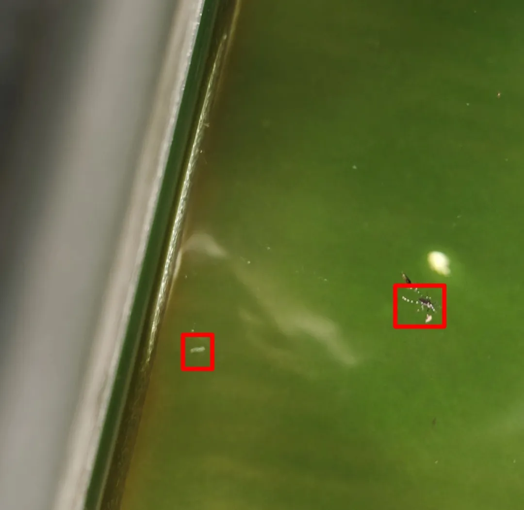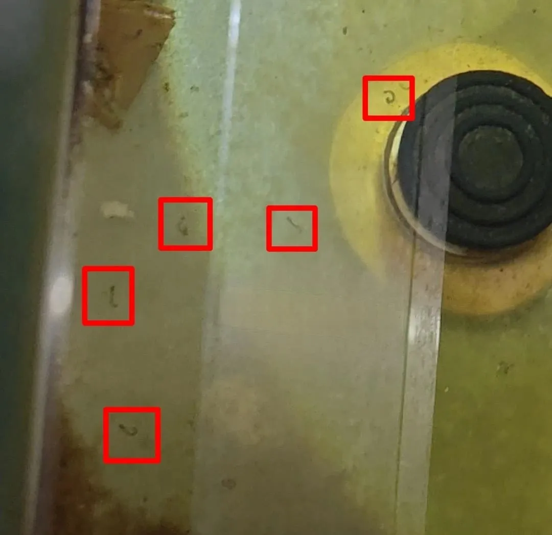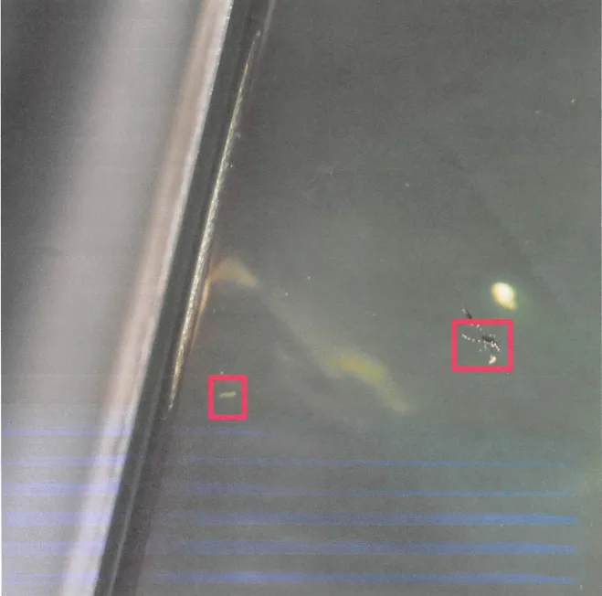 7月30日,三水区卫生监督所执法人员在对某商场进行蚊媒传染病防控专项检查时,在该商场“鲜活”区域的玻璃水缸内发现积水均已孳生出多条蚊幼虫在游动觅食,其中1个水缸面上的幼蚊正挥动着“花手臂”与顾客对峙,消费者生命健康安全受到威胁。