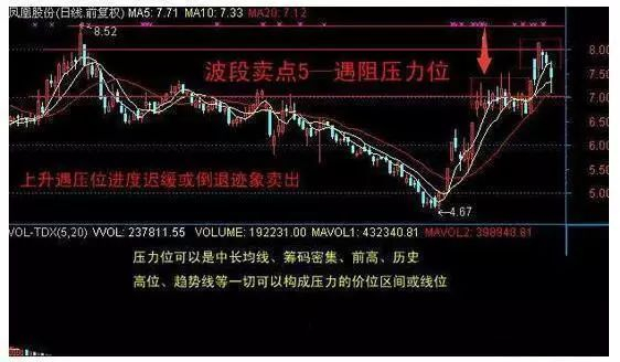 5、波段卖点——遇阻压力位卖出。如下图所示,需要注意,此压力位可以是中长期均线,筹码密集,前期高位,历史搞懂I安,趋势线等等都可以构成压力位或压力线:
