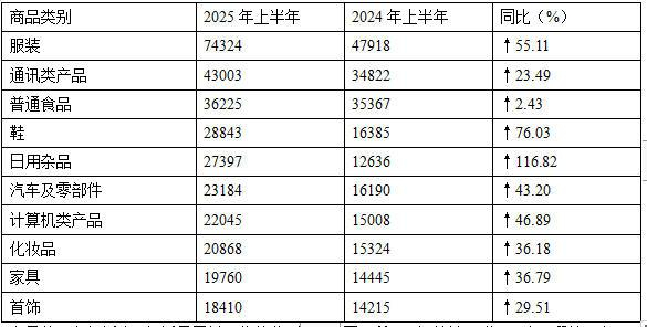 在具体商品投诉中,投诉量居前五位的分别为(如图4所示):服装、通讯类产品、普通食品、鞋、日用杂品。与2024年上半年相比,日用杂品、鞋、服装投诉量上升明显。