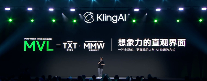 今年4月,可灵推出2.0版本视频生成模型,整合了之前在交互层更新过的所有功能,允许用户以多模态——不仅是文字——的方式与模型交互,比如提交参考图像、参考视频片段,并指定视频中的人物身份、外观、风格、场景、动作、表情、相机运动等元素。可灵将这种交互方式命名为「MVL」(multi-model visual language,多模态视觉语言),并称它是「全新的人机交互语言」。